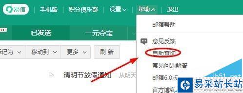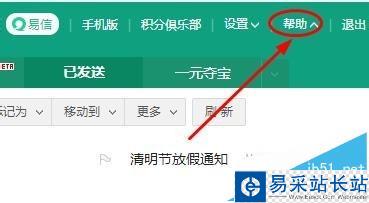 1、如果我們想查看更確切的投遞狀態,那么在郵箱首頁的幫助下點擊右側的三角形下拉按鈕