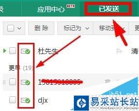 2、然后我們可以看到沒封右鍵的前面都有一個信封小圖標,如果該圖標前面有一個對勾號,那么就說明該郵件發送成功了,估計平時大多數人都是通過這一點來判斷的,如圖