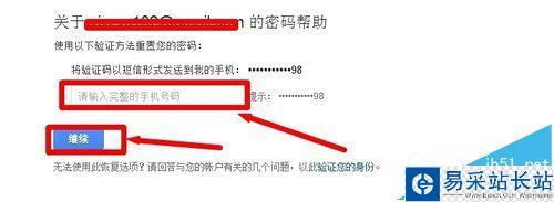 5、這里可以選擇手機驗證碼的獲取方式來取回,填寫一下手機的完整號碼,然后點擊繼續獲取驗證碼來驗證即可。