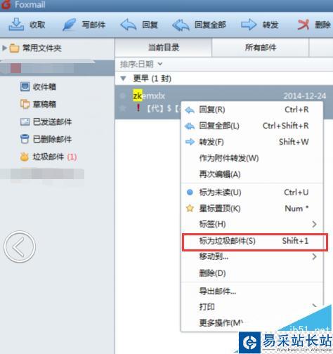 2、右擊,點擊標為垃圾郵件