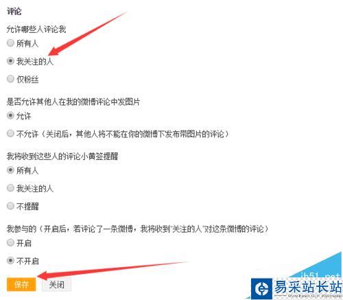 6、設置好只有我關注的人能評論自己的微博后,點擊保存即可了