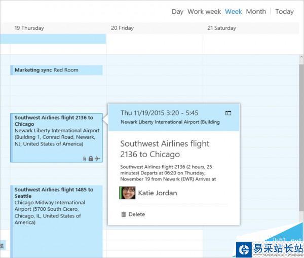 除了電子郵件聯系人建議功能之外,微軟也將推出特色的“電子郵件事件”功能,這將允許用戶將自己的航班計劃添加到日歷,Outlook一旦接收到到航班確認郵件,將自動將航班信息添加到日歷事件當中。