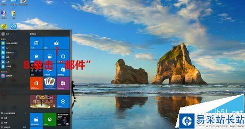 7、打開win10的開始菜單,單機“郵件”。(如果菜單的“任務欄”沒有“郵件”。你也可以到“所有應用中”或是“搜索框”中搜一下)