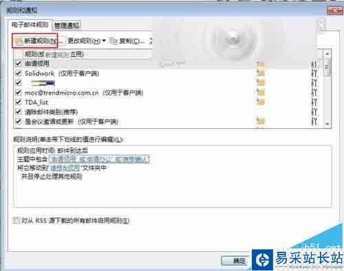 2、再單擊“規則和通知”對話框中的“新建規則”按鈕: