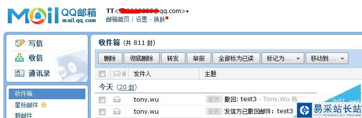 3、如果收件人用的是QQ郵箱,郵件可以撤回,撤回報告有30分鐘的延遲,如收件人用的是163或者Gmail郵箱,則無法撤回。