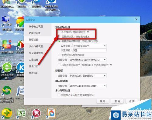 4、然后我們看見第一項就是“添加好友驗證”,下方有兩個選項,第一二項分別是“不用我驗證就能加我為好友”和“需要我驗證,才能加我為好友”,如下圖所示: