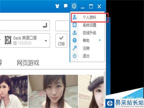 3、然后彈出一個下拉菜單,選擇其中的第一項【個人資料】字樣的按鈕。