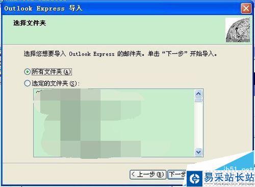 3、點擊“所有文件夾”,點擊“下一步”,系統開始把Outlook 2003的郵件文件夾導入到Outlook Express(這些文件被保存成.dbx格式)。