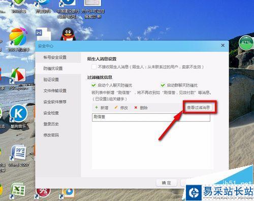 7、現在我們看到剛才設置的消息已經在過濾消息詞的里面了,設置好以后我們就可以點擊確定了。