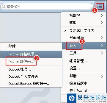請在foxmail7.1界面的右上角選擇菜單按鈕=》導入郵件夾,選擇您之前保存數據的郵件夾導入即可。