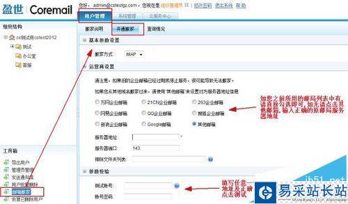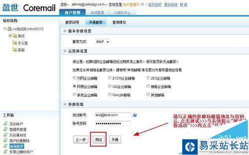 4、點擊”開通搬家”>>>填寫相應的參數項.在搬家前請務必確認要參用哪種搬家方式.建議使用imap方式;