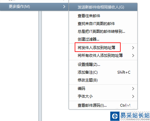 4、在更多操作彈出窗口,選擇將發(fā)件人添加到地址簿