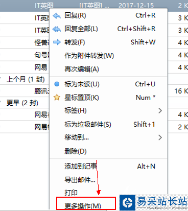 3、鼠標(biāo)右鍵單擊該郵件,選擇更多操作選項