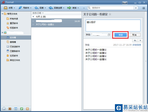 3、我們可以看到直接在郵件中進行純文本回復,點擊發送就成功回復了,如下圖所示: