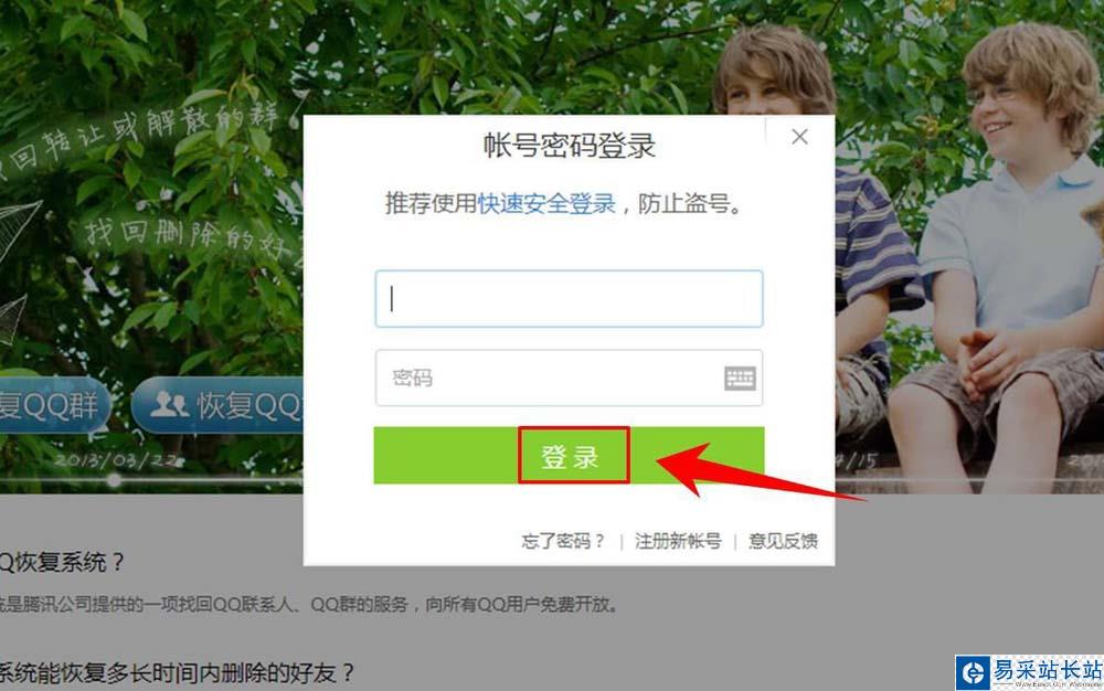 3、要恢復黑名單好友需要先將相應的QQ號在QQ恢復官網上進行登錄,登錄有兩種方式,一種是在QQ處于登錄狀態的話,可以點擊快速登錄。