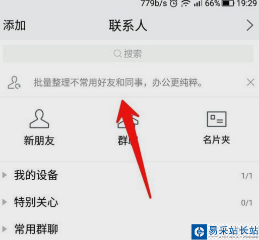 2、在好友名單中,點擊圖示位置中的“批量管理不常用好友”提示行。
