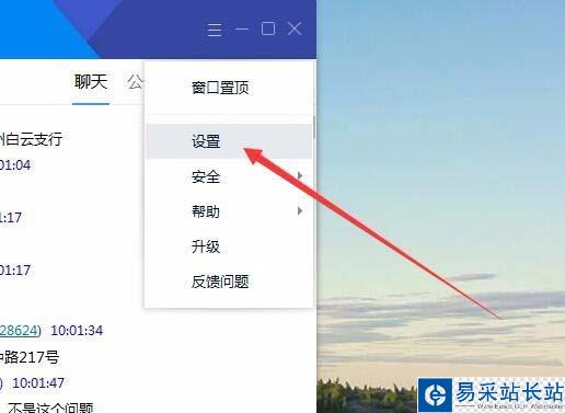 2、在打開的下拉菜單中點擊“設置”菜單項。
