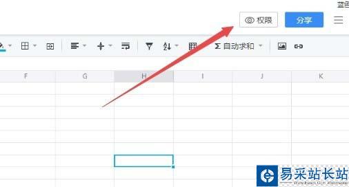 5、我們可以點擊表格右上角的“權限”按鈕,進行權限的設置。