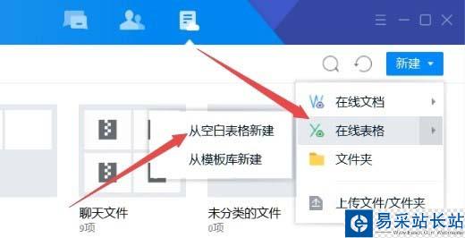 3、然后依次點擊“新建/在線表格/從空白表格新建”菜單項。