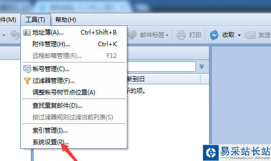 1、首先,先進入到了foxmail的窗口的界面當中,進行點擊菜單中工具,彈出了下拉菜單中,進行選中為“系統工具”