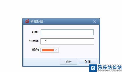 5、輸入標(biāo)簽名稱(chēng),點(diǎn)擊輸入快捷鍵,點(diǎn)擊選擇顏色,再點(diǎn)擊確定,標(biāo)簽新建完成。