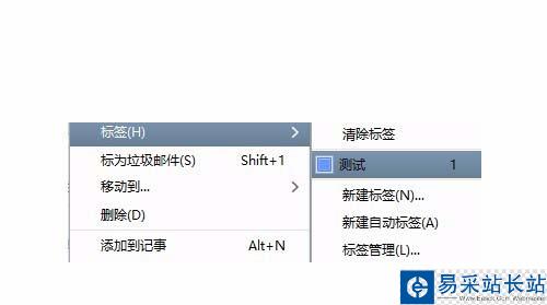 6、右鍵點(diǎn)擊要添加后續(xù)標(biāo)志的郵件,點(diǎn)擊選擇“標(biāo)簽”,再點(diǎn)擊選擇 剛剛新建號(hào)的標(biāo)簽,郵件的后續(xù)標(biāo)志就添加完成了。