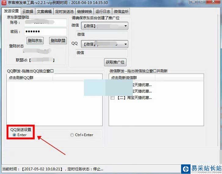 以微信為例,拖出微信群成為獨(dú)立窗口,刷新;在QQ群里發(fā)單的話,將發(fā)送設(shè)置要設(shè)置為Enter,微信群的話,不做要求,如圖所示