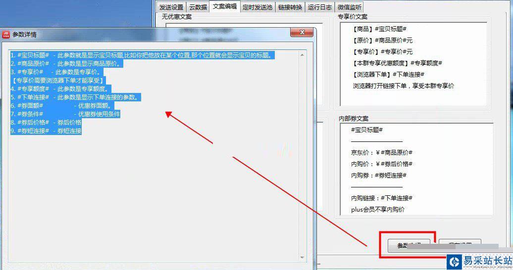 8.如果要編輯【內(nèi)部券文案】的內(nèi)容,可以查看【參數(shù)介紹】,根據(jù)需求,自行編輯。