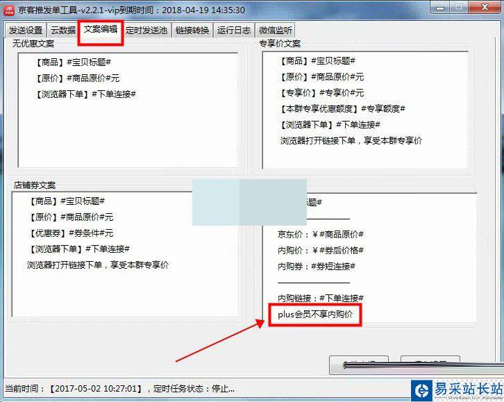 7.發(fā)單的文案編輯。在【內(nèi)部券文案】中,特別提醒,必須備注內(nèi)容【Plus會員不享內(nèi)部價】,其他三項的文案內(nèi)容,可以保持不變,編輯好之后,點擊【保存設(shè)置】。如下圖