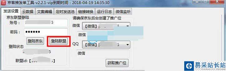 3.京東聯(lián)盟后臺創(chuàng)建好推廣位,打開京客推軟件,登陸京東賬號和登陸聯(lián)盟賬號,把發(fā)單的QQ群,微信群,拖拽出來成為獨(dú)立窗口,刷新,如圖示: