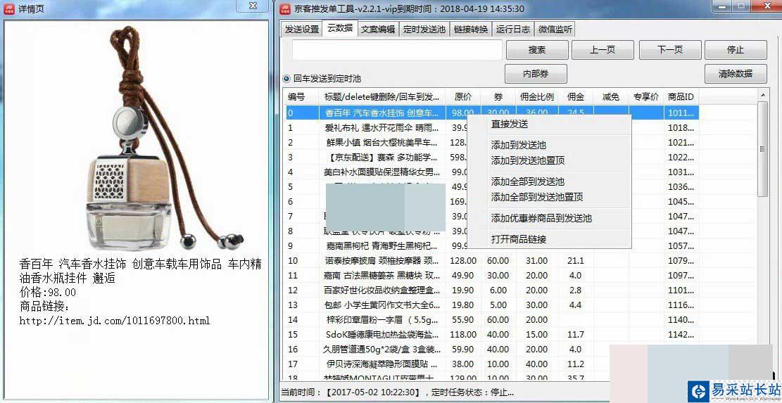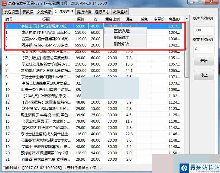 9.在【定時發(fā)送池】中,右擊商品,可以直接發(fā)送,刪除商品。