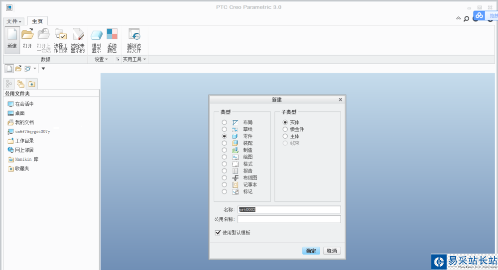 2、在Creo軟件的創(chuàng)建窗口中新建一個(gè)零件;