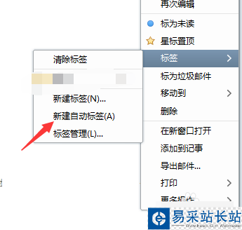4、點擊標簽顯示標簽列表,找到新建自動標簽,如圖