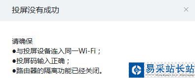 6、如果投屏沒有成功,可以檢查一下自己的投屏碼是不是正確,檢查一下投屏設備和自己的移動設備是不是在同一個無線環境下。