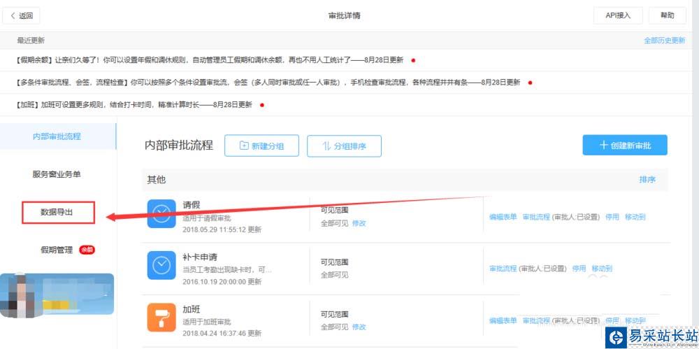 3、進(jìn)入審批后再點(diǎn)擊左邊的數(shù)據(jù)導(dǎo)出
