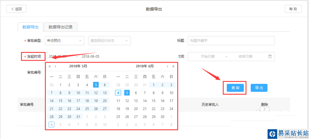5、再選擇好需要查詢的時(shí)間段,時(shí)間最長為一個(gè)月,可以按每個(gè)月查詢。設(shè)置好時(shí)間后再點(diǎn)擊右邊的查詢