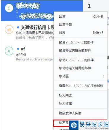 7、不小心添加之后想將郵件從“垃圾郵件”中拿出,直接選擇郵件右鍵點擊“這不是垃圾郵件”選項即可,如下圖: