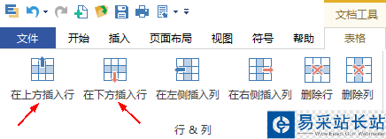 2、在表格菜單,點擊在上方插入或在下方插入。