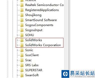 3、在上面的兩個路徑下找到帶有solidworks字樣的文件夾,然后將其刪除。