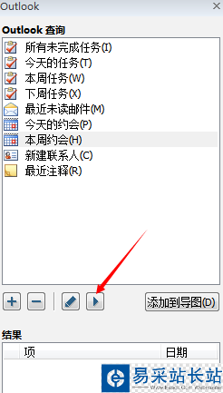 2、在Outlook任務面板中,選擇要使用的查詢,點擊運行按鈕運行查詢,查詢結果出現在面板里的較低部分;