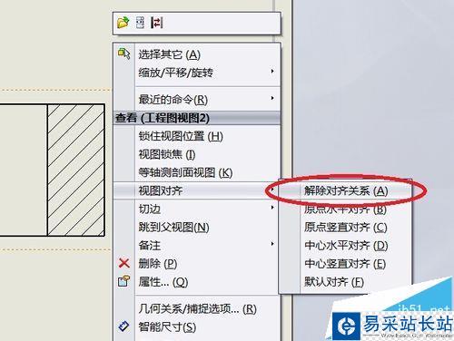 10、右擊剖視圖。如圖所示 找到 解除對齊關系 按鈕