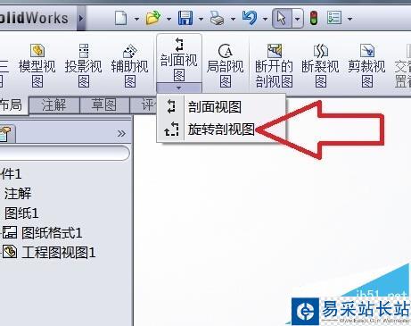 8、接下來小編需要生成一個 旋轉剖視圖,如圖所示 找到旋轉剖視圖按鈕