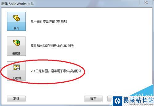 2、在彈出框中選擇 工程圖