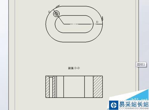 9、生成剖視圖。但是可以看到沒有和主視圖對正。所以接下來就是把兩個視圖對正