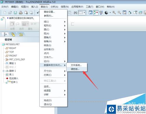 2、找到草圖菜單-數據來自文件-調色板;(如果是用其它軟件繪制好的六邊形,可以使用來自系統文件)