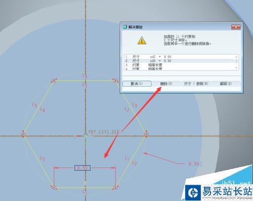 5、如需要調整多邊形的大小,可以雙擊尺寸或修改標注,如出現尺寸干涉,可以刪除多余;