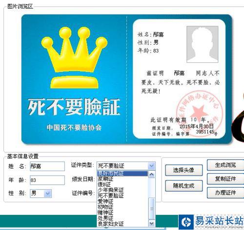 1.選擇好你的頭像,選好你要生成的證件,填好相應的填空,點擊辦理證件,秒秒鐘你的證件就辦好保存到桌面上啦 ~~~