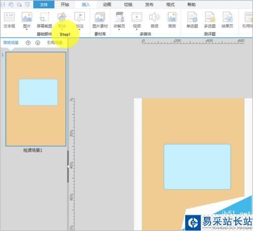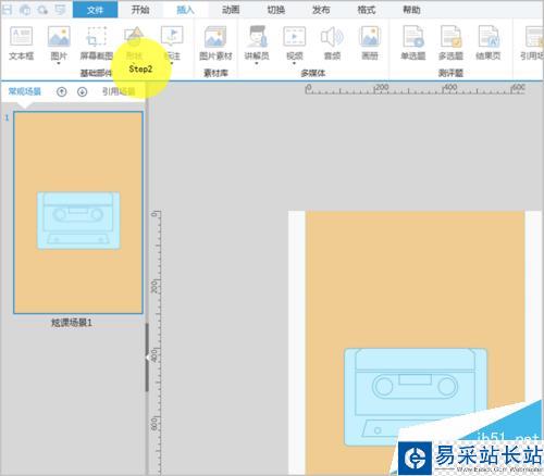 6、最后回到課件場景,添加引用場景動畫,設置場景容器為95*32px,放置在如下位置,將之前做的磁盤引用場景放到場景容器中即可。