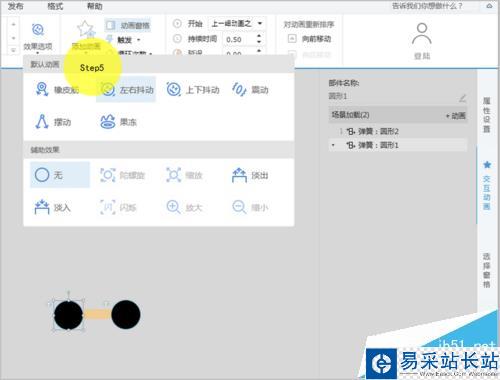 5、給兩個磁盤分別添加彈簧動畫,設置效果:左右抖動、持續時間30秒、無限循環,兩個動畫同時進行