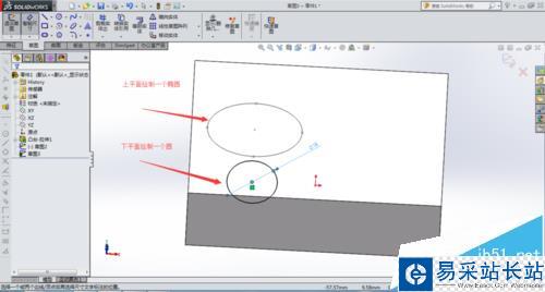 1、隨意繪制一個長方體為例,在長方體的上平面繪制一個橢圓,在下平面繪制一個圓,如圖所示。這里只是舉例介紹方法,大家可以隨意繪制自己需要的形狀。